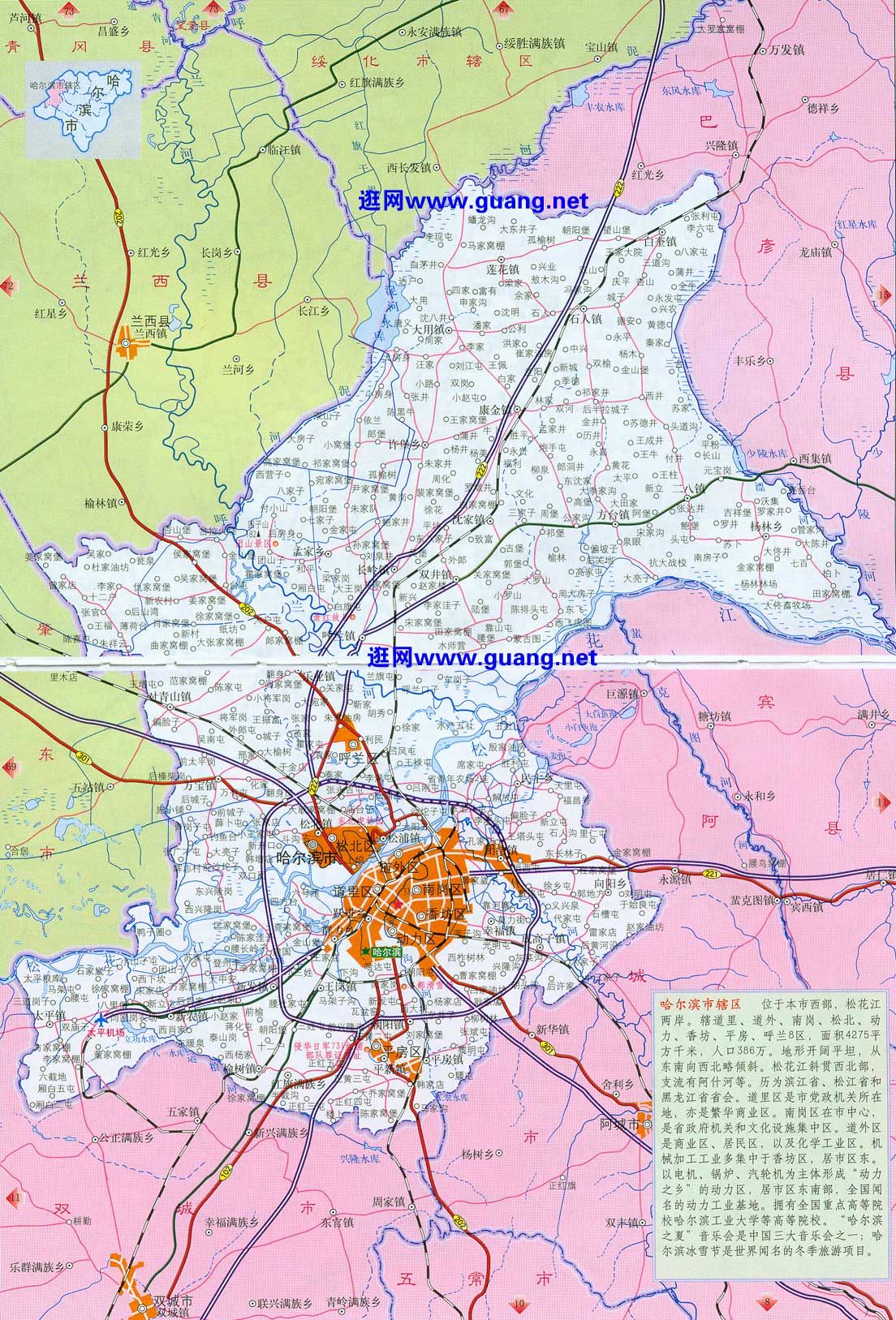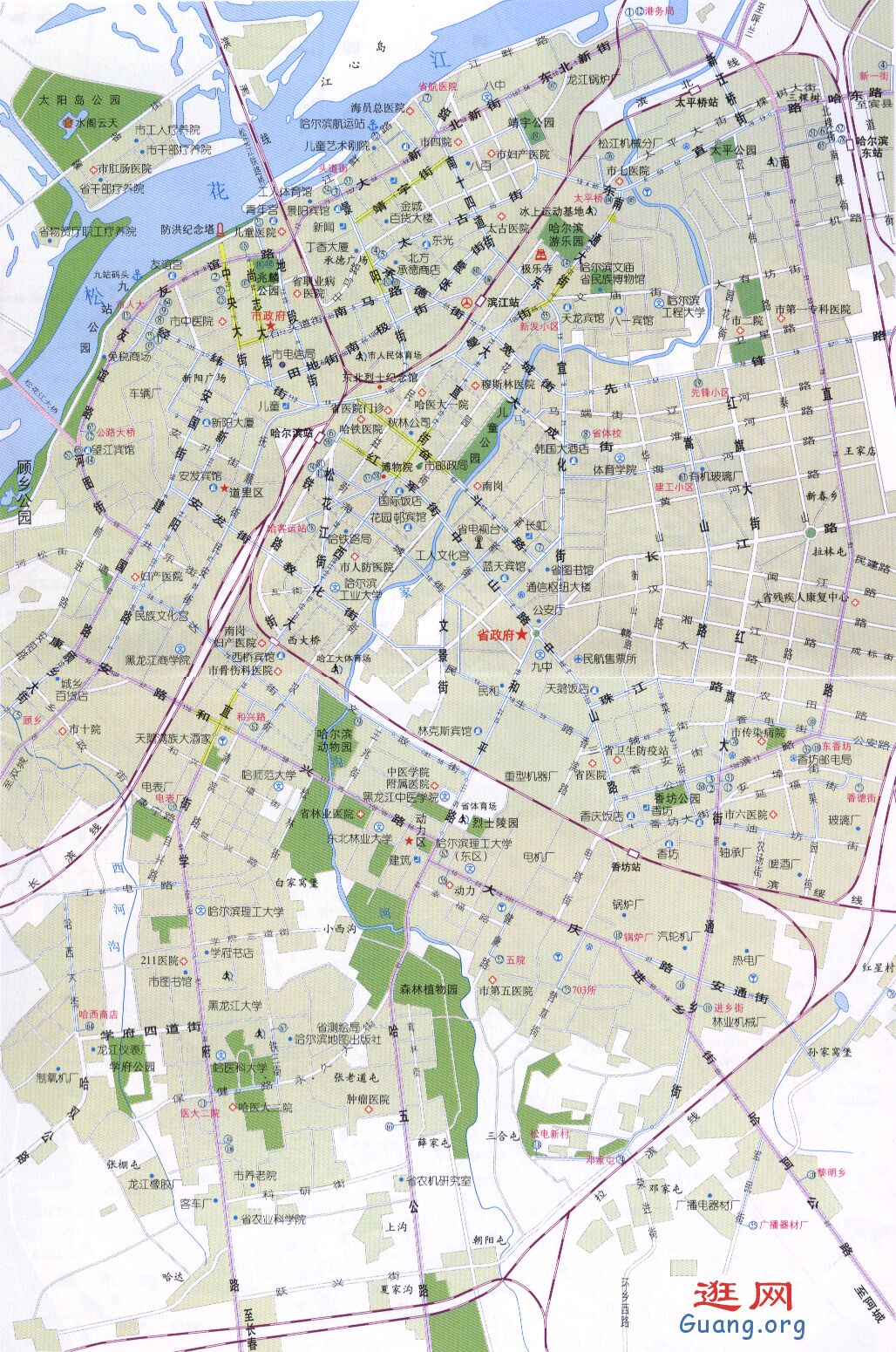 3、下车后,最晚不超过第二天,买两份详细的地图(A、哈尔滨市区图,B、大幅的哈尔滨市政区图),及时修正和优化旅游计划。