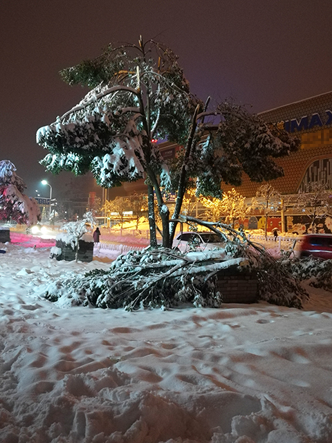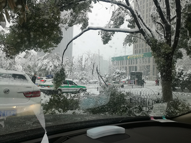 下图为1月4日22点30分左右拍摄的皋城路北侧,这场暴雪压断了许多树木。图片编号223305
