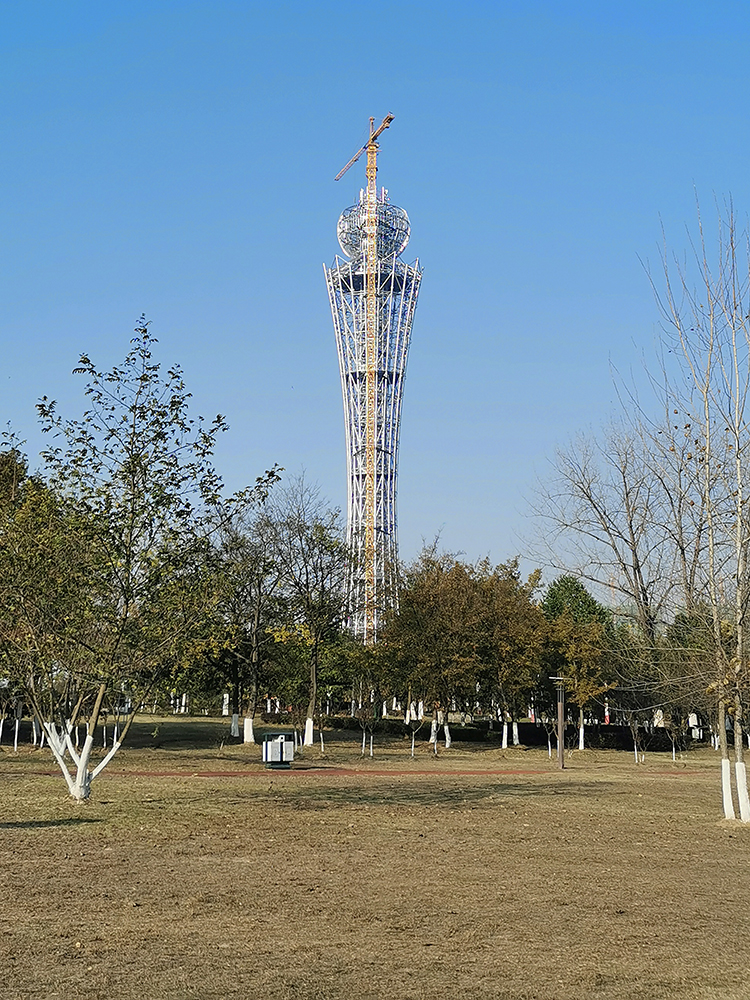 最后来一张正在建设中的“六安(河西)电视塔”。这座塔的外形很像广州塔,但却是一个“简配版”,而且主要是高度被压缩了。于是,广州塔看起来细高细高的,是个“小蛮腰”,而这座塔矮矮的,有点儿“显胖”~~~