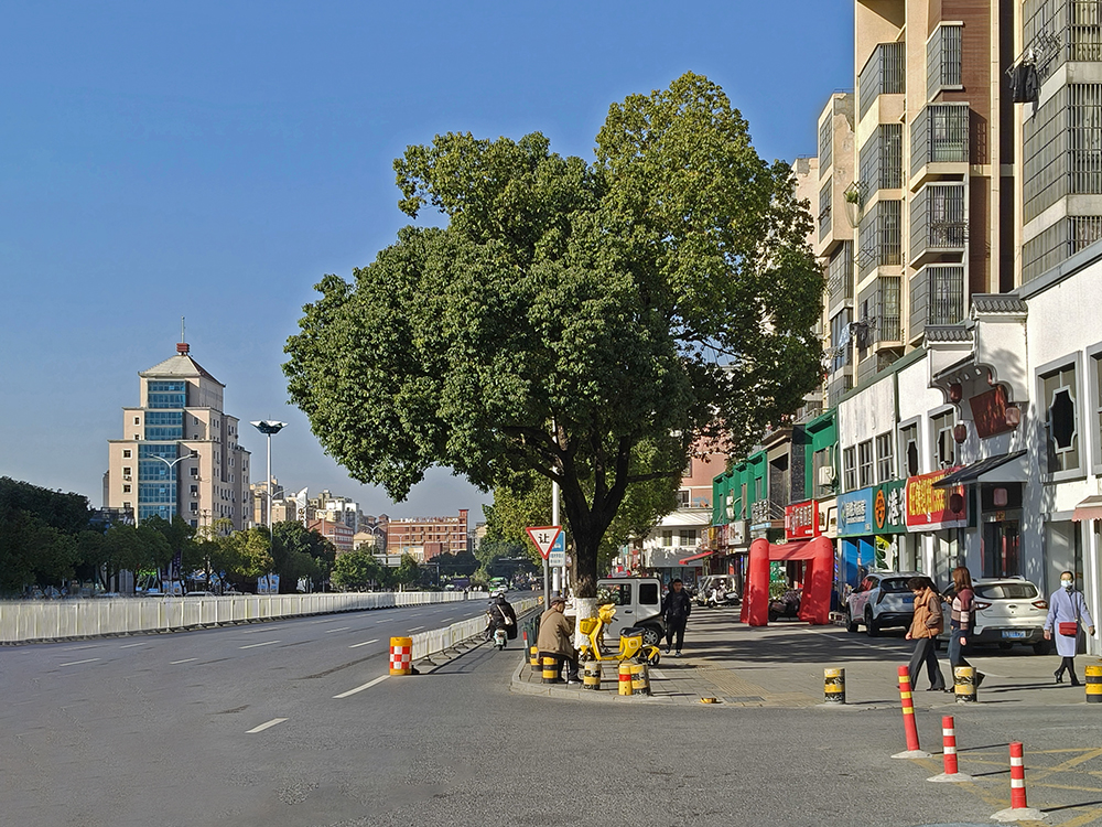 十几年前,这条路刚拓宽的时候,两边都还是小树苗,“今已亭亭如盖矣”